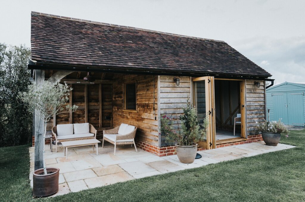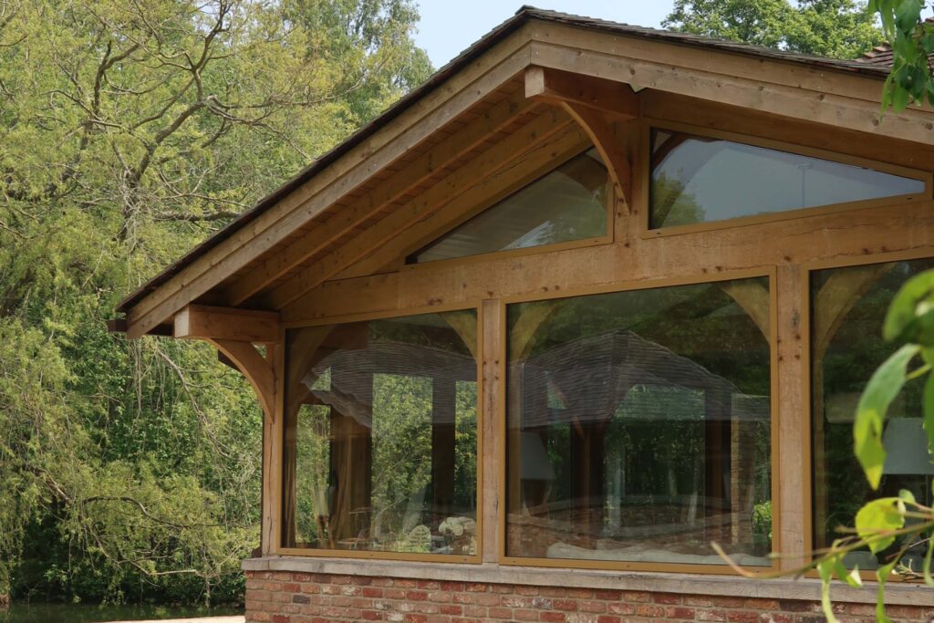 This summer house is fully oak framed including oak studs and rafters with a boarded finish on the walls and ceiling.Summer House